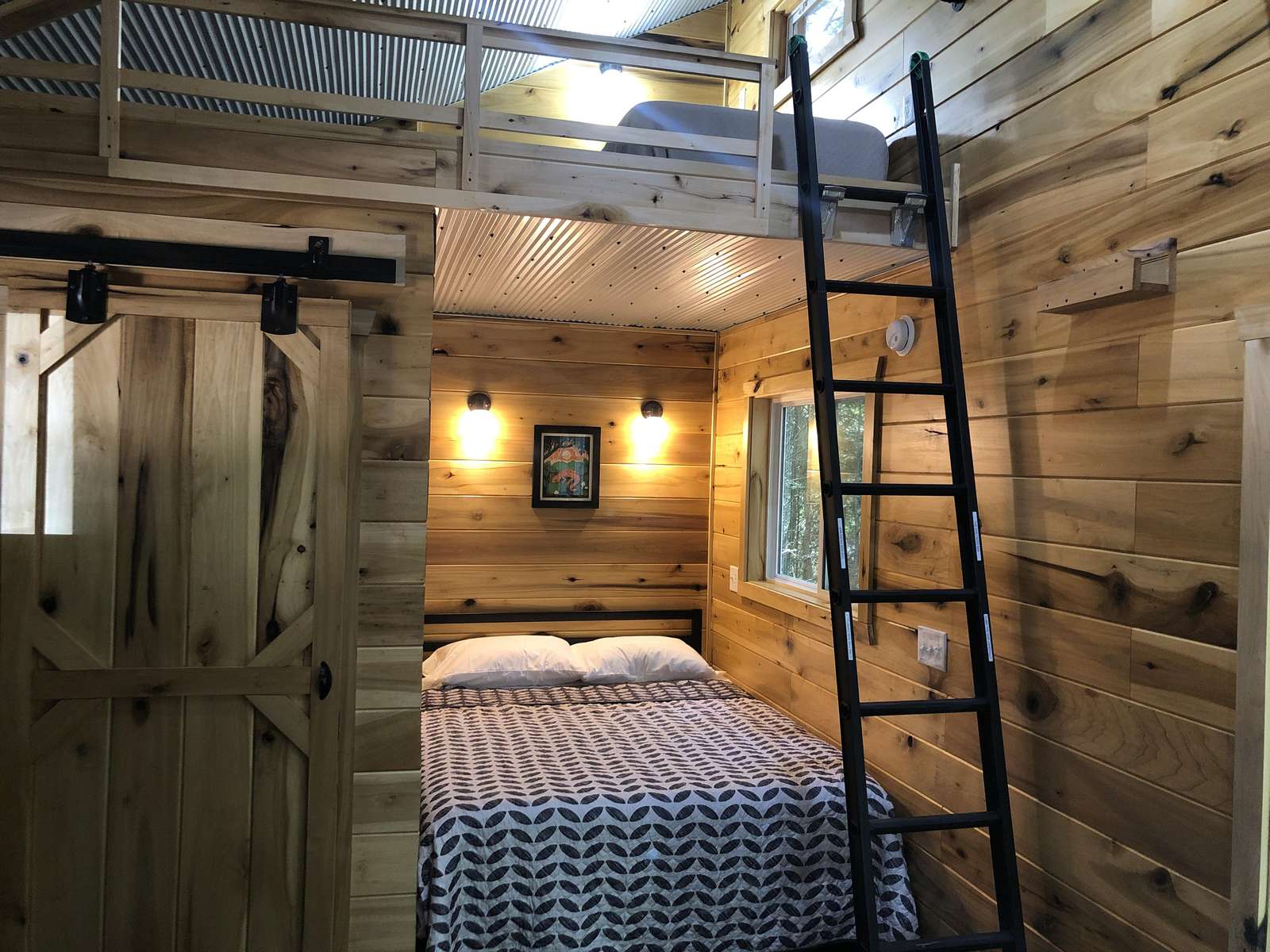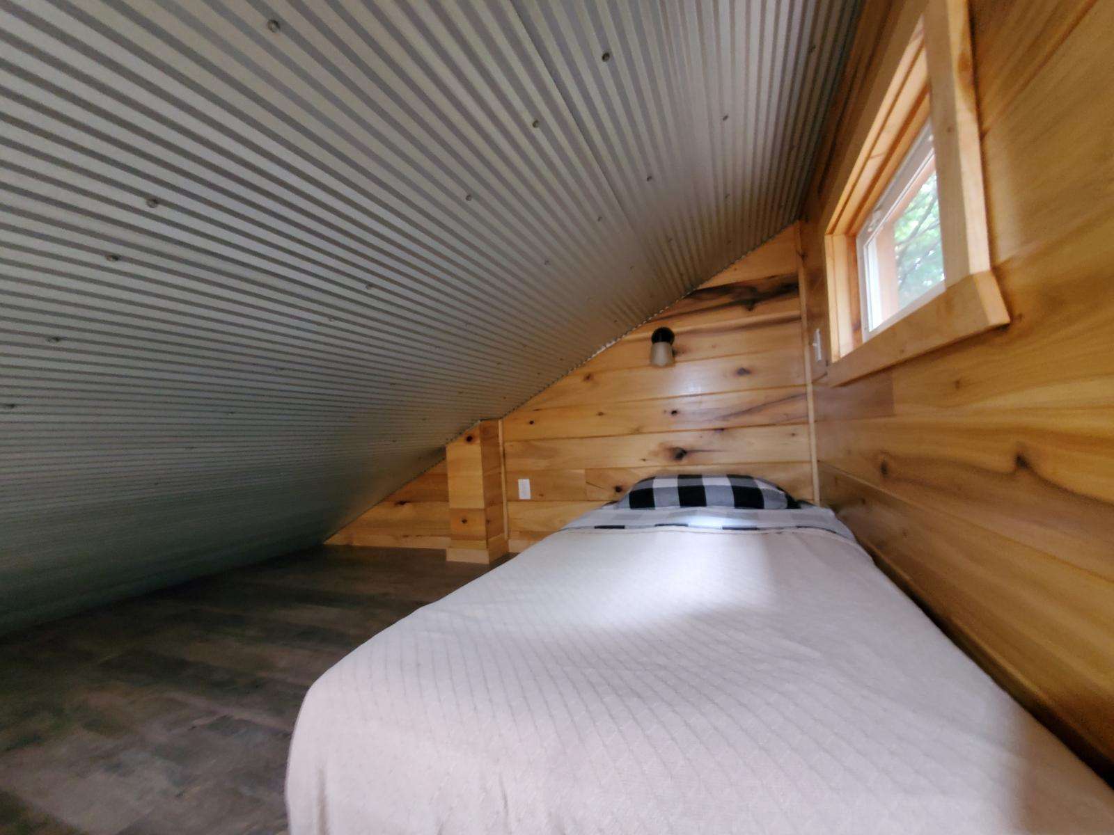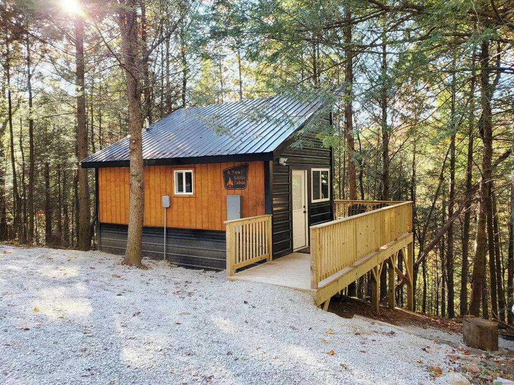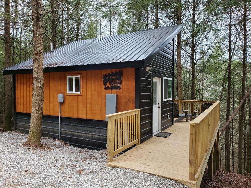 Named after the Red Spotted Newt, a salamander commonly found in the Red River Gorge, A “Newt” Little Cabin is a unique 240sqft studio +loft that sleeps up to three people. Start your morning with a cup of coffee listening to the birds sing while relaxing in an Adirondack chair on the walk around deck. In the afternoon, explore the rock shelter located behind the cabin or take a short trek in Cave Hollow. In the evening, climb the hillside for a majestic view while roasting marshmallows around the fire situated high above the cabin or stargazing in the soothing hot tub amongst the trees. A “Newt” Little Cabin is conveniently located only minutes from Natural Bridge State Resort Park, Red River Gorge Geological Area, and other local attractions and restaurants. It has a queen size bed featuring a Molecule mattress on the main floor and a twin-size mattress in the loft (accessible by climbing an 8ft ladder). The cabin has a fully equipped kitchen, eating nook/workspace, full bathroom, high-speed internet, a smart TV, Barcalounger and La-Z-Boy leather recliners, and heating and air conditioning. The cabin is on well water and bring water for drinking. There is one pet less than 25 pounds is allowed. No pets are allowed to be unattended in the cabin unless crated.