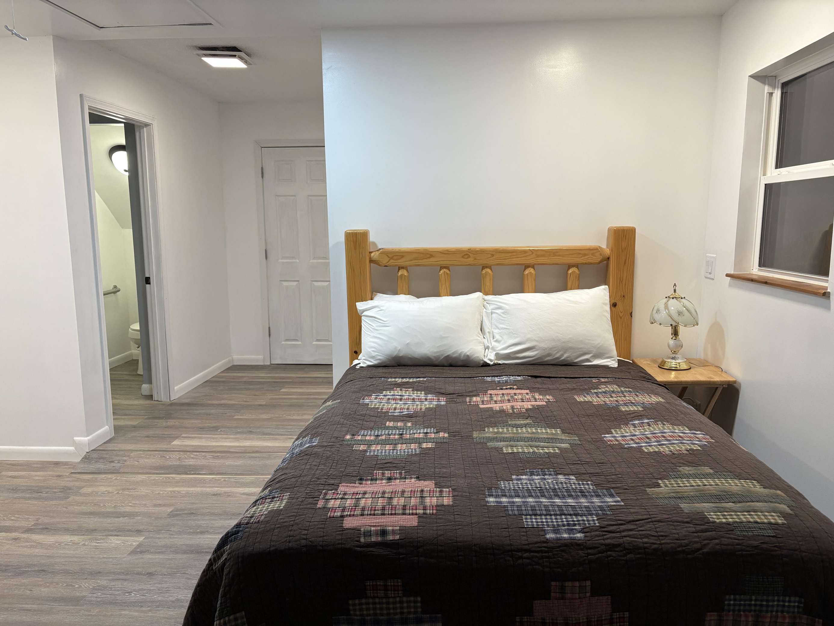 It is newly renovated and the property is under new management. The sleeping arrangements are 1 queen bed. There is wi-fi with a smart television. A mini fridge and microwave with free wi-fi. This room is ground level.