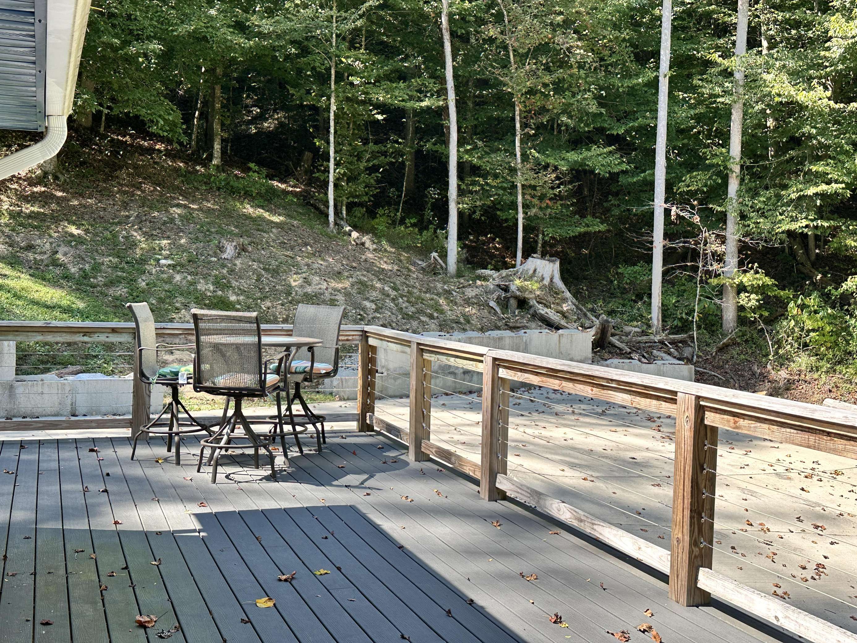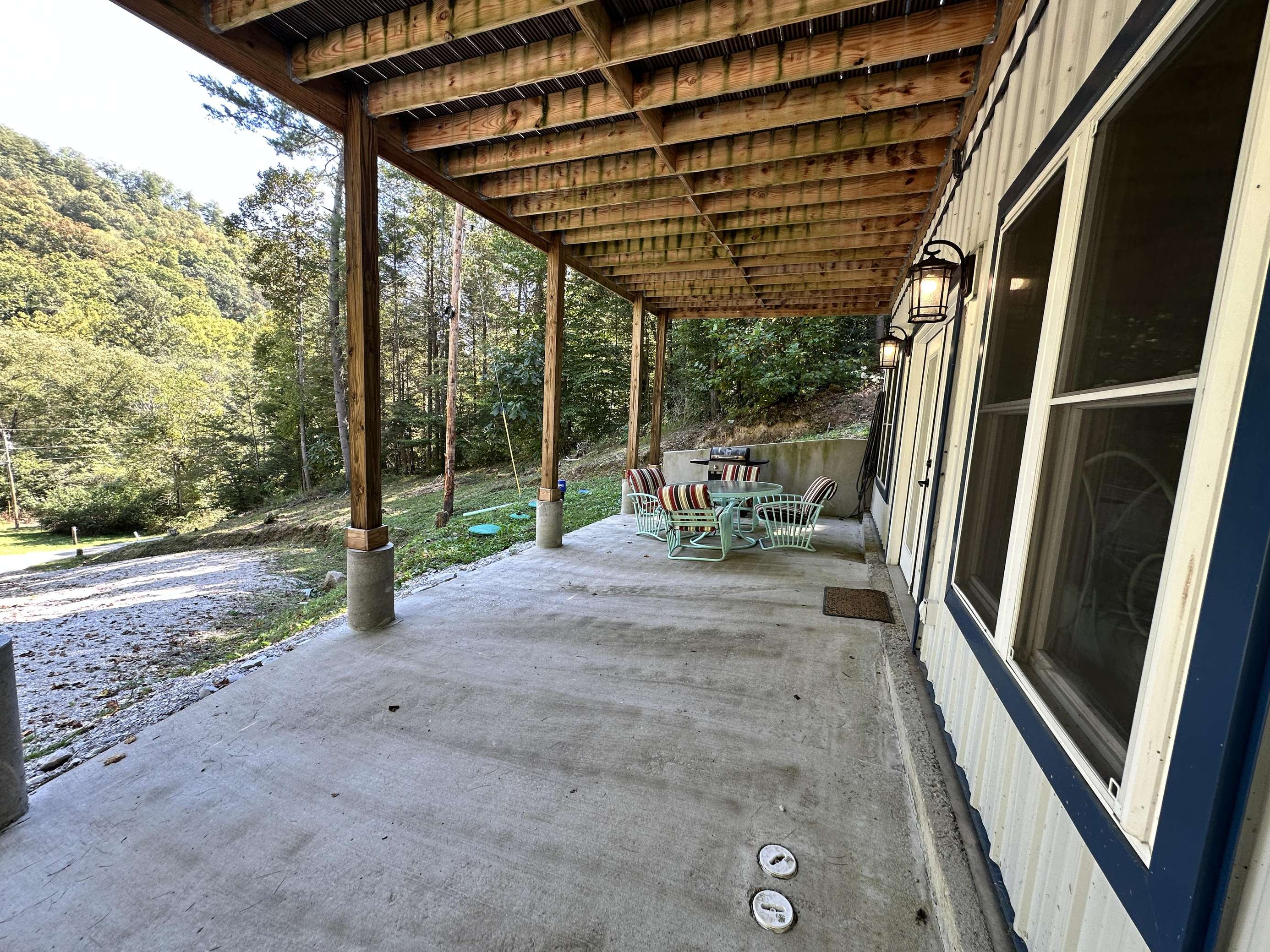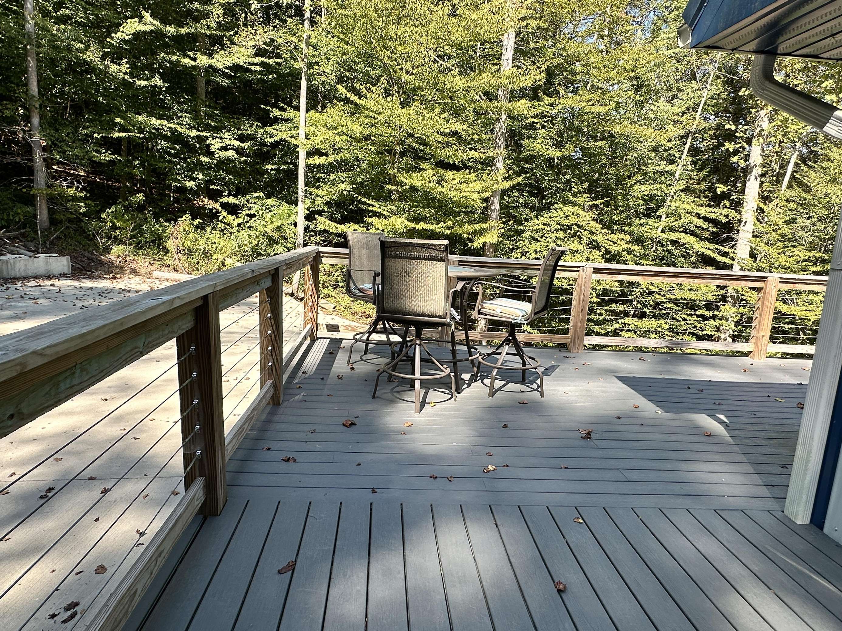 Porch space: There are two levels of porch. The first level accesses the main front door, and lower bedroom. Upstairs, off of the kitchen and living room space, is the upper porch, which has a truly fantastic view of the forest!