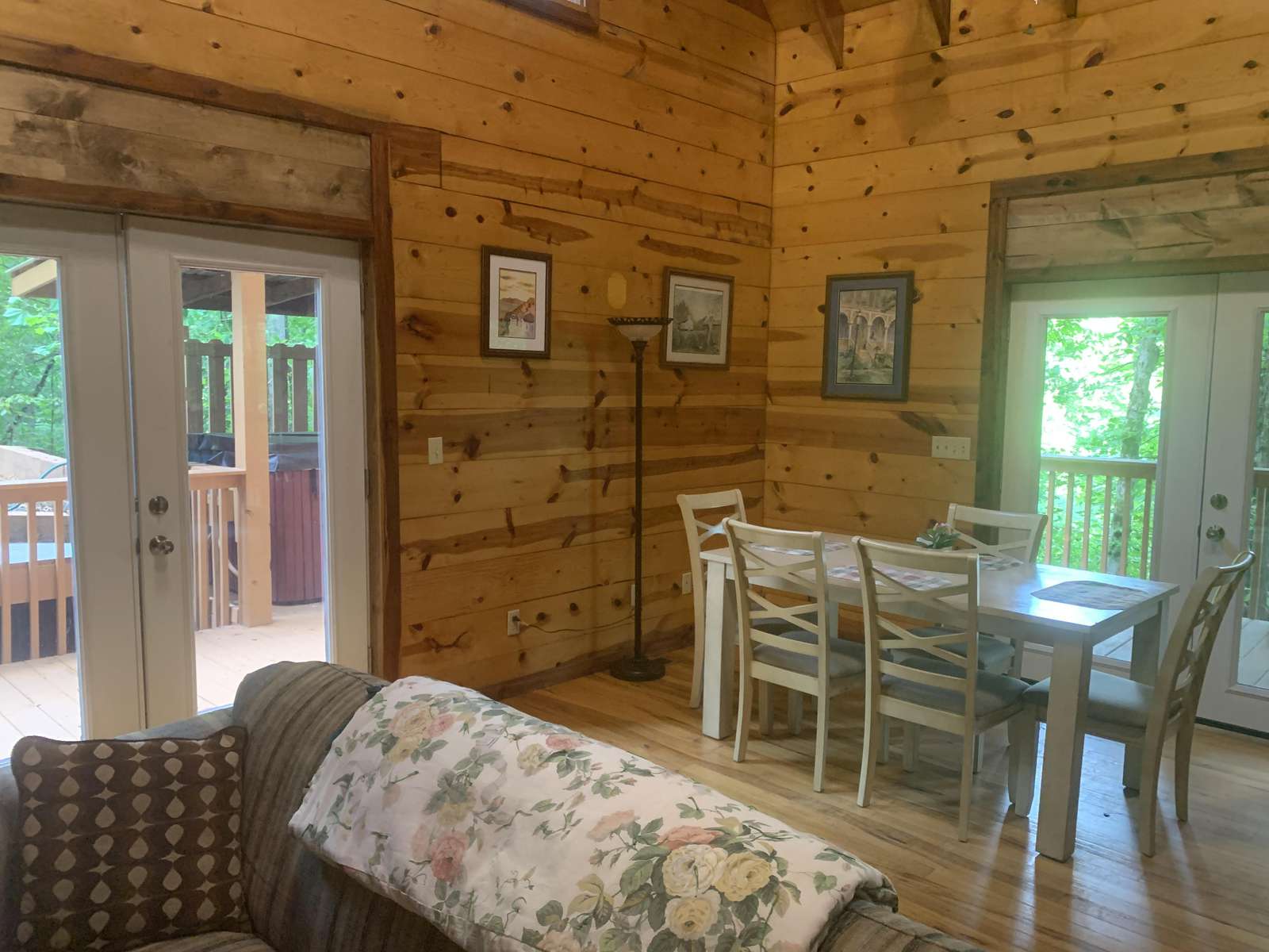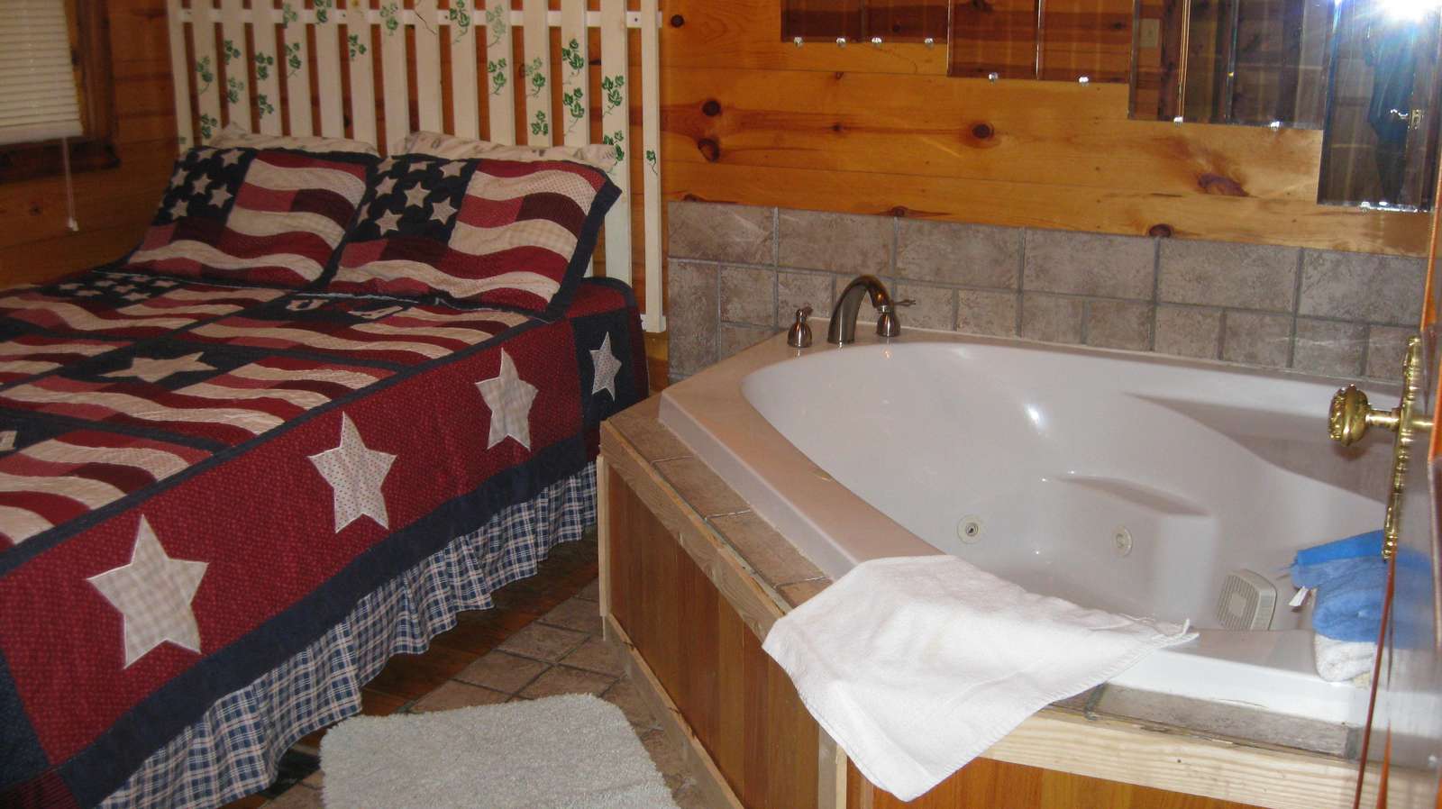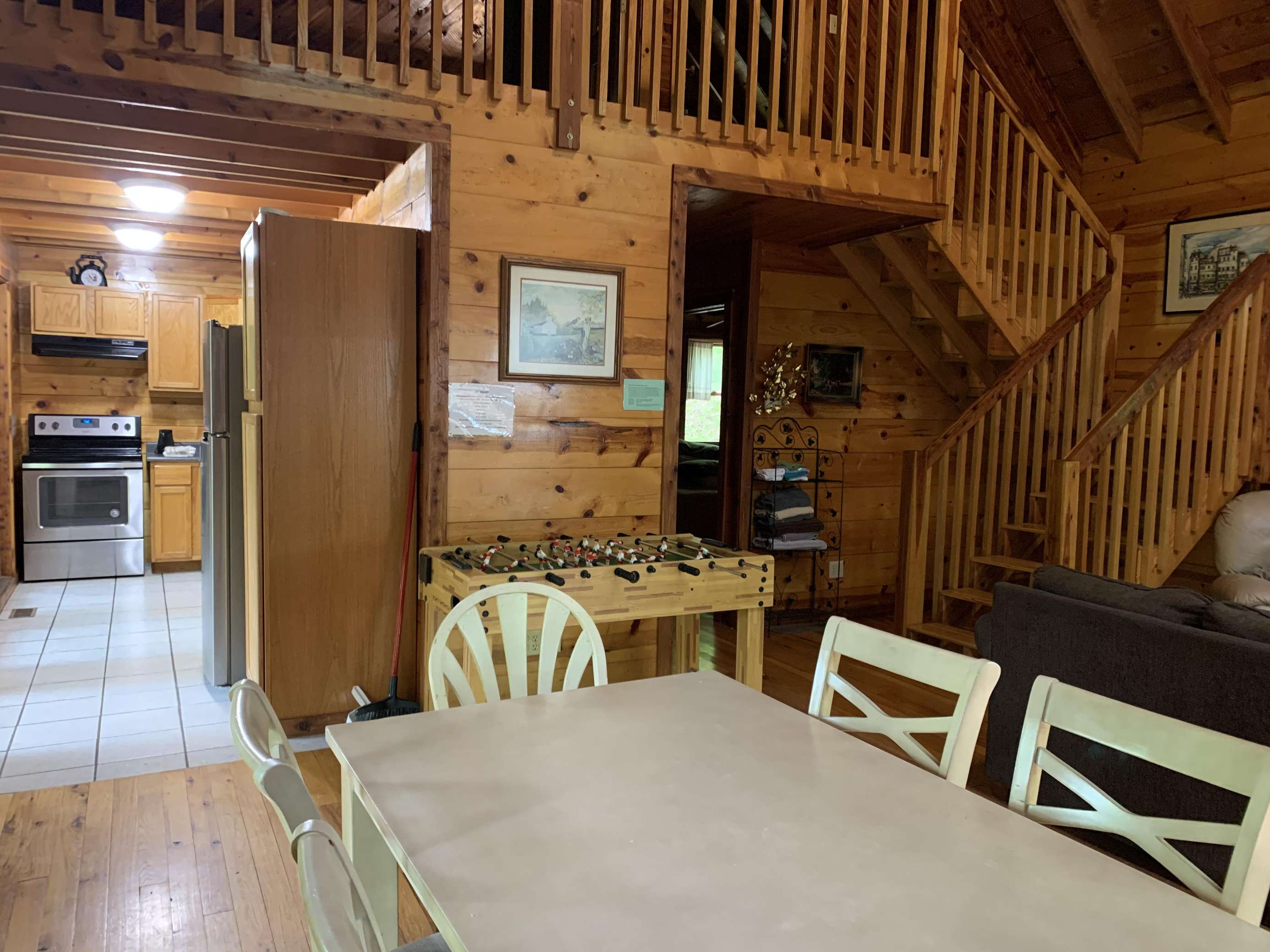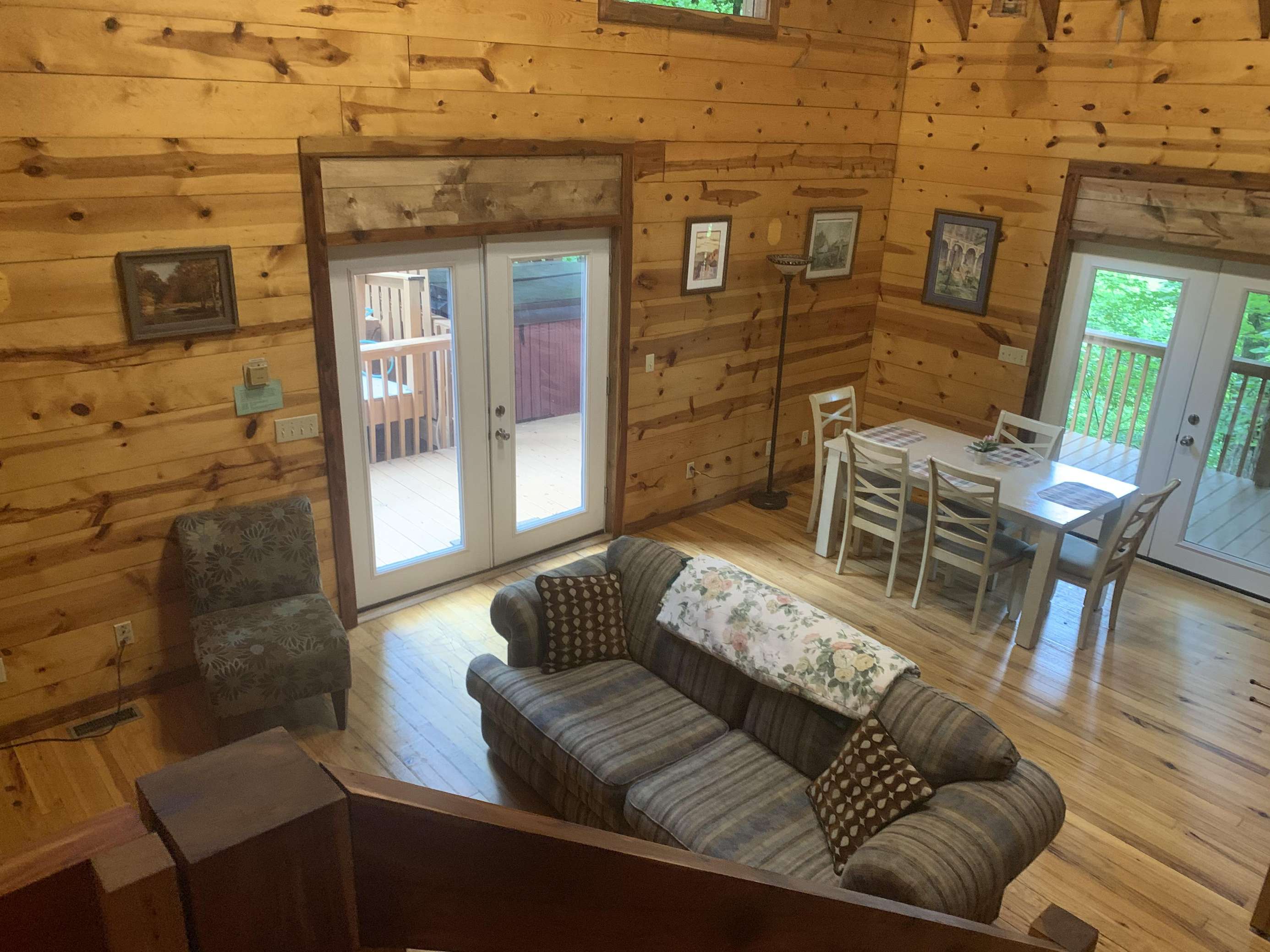 Woodshed is named for the seven different woods (pine, hemlock, oak, ash, hickory, cedar and cherry) used in its construction and furnishing. It is nestled in the beautiful hills bordering the Red River Gorge area. This comfortable cabin will sleep up to 6 people and is wheelchair accessible on the first floor. From the master bedroom with a queen size bed and Jacuzzi on the first floor to the two comfortable bedrooms with queen size beds on the second floor, everyone can rest well tonight for an exciting adventure tomorrow such as hiking the trails, rock climbing, or sight seeing in the Red River Gorge on Kentucky's National Scenic Byway. The cabin is pet friendly with a maximum of 2 pets. PLEASE NOTE THAT CHECK IN IS AT OUR OFFICE AND DIRECTIONS WILL BE SENT WITH YOUR CONFIRMATION.